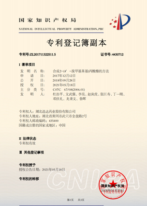 湖北迅達藥業股份有限公司是專業從事醫藥原料藥及中間體生產經營的國家重點高新技術企業,也是國家 4A 標準化良好行為企業、湖北省智能制造試點示范企業、湖北省國際科技合作基地、湖北省信息化與工業化融合試點示范企業、湖北省創新型企業、湖北省上市后備“金種子”企業、省級“專精特新”企業、上云標桿企業。公司被評為湖北省醫藥工業五十強、湖北省醫藥行業創新型企業十強、湖北省醫藥行業出口型企業十強、湖北省優秀企業、湖北省“重合同守信用”企業、湖北省模范勞動關系和諧企業、湖北知識產權示范企業、中國外貿出口先導指數樣本企業。